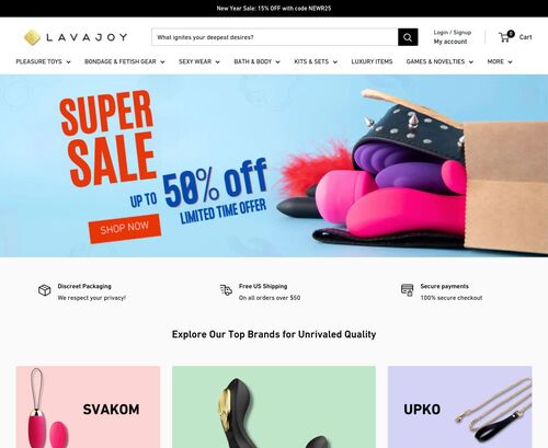 LavaJoy stands out as one of the best adult online stores to buy realistic pleasure toys, bondage kits, lingerie, luxury items, and adult games. It is a popular adult store where you can buy certified adult toys for men, women, and couples. The website houses an impressive library to ensure you don’t miss a product to spice up your fap or sex sessions. Whether you are searching for a torso, BDSM toys, dick cages, or seeking to buy an odorizer, this website has you covered, as it caters to all your fetishes. This adult online store is popular because it maintains a clean aesthetic and has no third-party advertisements. This ensures an uninterrupted browsing experience.