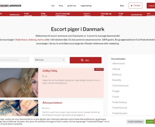 Du kannst auf dieser Plattform ganz einfach die richtige heiße Braut für dich finden. Es gibt eine Liste mit allen Städten, in denen Sie Escorts in ganz Dänemark finden können. Und in jeder Kategorie finden Sie die Liste aller verfügbaren Anzeigen. Jede Anzeige kommt mit Galerien von schmutzigen Bildern und Beschreibungen der Dienstleistungen und Knicke, die jedes Babe anbieten kann.