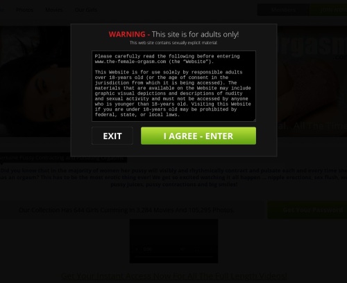 TheFemaleOrgasm es un sitio porno que sólo ofrece vídeos de mujeres masturbándose y teniendo orgasmos. El orgasmo femenino es bastante intenso y puede durar entre un par de segundos y unos minutos. Podrás ver todo esto en los vídeos XXX disponibles cuando visites el sitio. A diferencia de la mayoría de los sitios porno que tienen vídeos falsos de orgasmos femeninos, verás diferentes vistas de mujeres masturbándose hasta alcanzar orgasmos claramente visibles. Observa cómo los coños húmedos chasquean, palpitan, se sacuden, tiemblan y palpitan mientras se produce el orgasmo femenino. Los vídeos presentan vistas de cuerpo entero y de primerísimo plano, lo que le ofrece una experiencia interrumpida de los orgasmos femeninos. Los vídeos no tienen guión y las mujeres son mujeres normales y corrientes que se lo pasan bien delante de la cámara para que las veas y te masturbes.