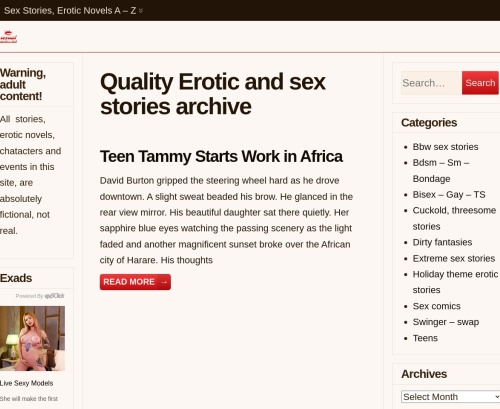 SexualStories es uno de los mejores sitios eróticos, sobre todo para los interesados en novelas y relatos eróticos. Desvela un vibrante blog XXX repleto de los últimos relatos y escritos eróticos. El corazón del sitio reside en su capacidad para fomentar el sentido de comunidad entre los entusiastas del porno. Los usuarios pueden abrir una cuenta para enviar sus historias eróticas favoritas y mantenerse al día sobre el desarrollo de los relatos. El diseño simplista del sitio web, junto con secciones exclusivas para ver relatos eróticos e imágenes, presenta una interfaz de usuario despejada y atractiva. La presencia mínima de anuncios es una característica única para mejorar su diseño centrado en el usuario, garantizando una experiencia de navegación sin obstáculos.Además de fomentar las interacciones, SexualStories amplía su utilidad con un puñado de funciones que enriquecen la experiencia del usuario. La inclusión de un cuadro de búsqueda y enlaces a otros sitios web e historias porno útiles permite una exploración más exhaustiva. La navegación fluida, junto con el sencillo diseño del sitio web, hace que profundizar en temas de interés sea pan comido. Ya sea participando en relatos eróticos o explorando sitios web externos compartidos en la plataforma, SexualStories es una plataforma enriquecedora para que tanto los aficionados al porno como las estrellas porno se reúnan y se deleiten en su pasión compartida.