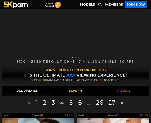 5KPorn on premium-pornosivusto, joka on täynnä eksklusiivisia videoita, joissa on kuumimmat pornotähdet, joilla on seksikkäät vartalot. Se on yksi suosituimmista alustoista, jossa pääset käsiksi kuumimpiin 5K hardcore pornovideoihin, joilla voit piristää fap-kokoelmaasi. Sivusto huokuu tyylikästä ja siistiä käyttöliittymää, joka esittelee joitakin teaser-videoita etusivulla, jonka avulla voit tutkia lisää. Kaikki pornovideot ovat visuaalista herkkua, sillä ne ovat saatavilla teräväpiirtona ja erinomaisella 5K-laadulla, mikä takaa koskemattoman katselukokemuksen. Laaja kirjasto päivitetään päivittäin tuoreilla videoilla ja alastonkuvilla. Näin varmistetaan, että fap-sessioihisi löytyy aina jotain uutta.