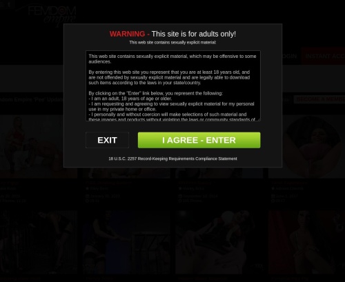 FemdomEmpire on naisdominaarisivusto, joka tarjoaa sinulle tonneittain seksivideoita naisista, jotka hallitsevat kohteitaan. Sivustolla on kyse siitä, että naiset hallitsevat ja rankaisevat kollegoitaan ja pakottavat heidät tekemään asioita, jotka alentavat alaisia ja kohottavat herraa. Kohteet voidaan laittaa häkkeihin, kusta päälle, rankaista ja nussia dildoilla ja muilla seksileluilla. Jos pidät tämäntyyppisestä fetissistä, olet innostunut, kun vierailet sivustolla. Sivusto on siisti, eikä siinä ole mainoksia tai ponnahdusikkunoita. Sivustolla on muutamia välilehtiä, kuten Videot, Dommes, Kategoriat, Haku, Jäsenen kirjautumisosio ja Pikakäyttöosio. Etusivulla on useita pikkukuvia seksivideoista, jotka näyttävät, millaista eroottista sisältöä voit odottaa, kun liityt jäseneksi.