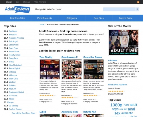 Adult Reviews on mukava arvostelusivusto kaikenlaisille pornosivustoille! Vaikka heillä on joitakin kategorioita, parhaat sivustot on jo listattu niiden kätevässä vasemmanpuoleisessa luettelossa - löydät kaikki suuret nimet, kuten Brazzers, Porn Pros, Bang, MET Art, Nubiles ja muut pornomaailman jättiläiset, jotka on jo listattu ja analysoitu siellä. Se ei tietenkään tarkoita, etteivätkö he kiinnittäisi huomiota pienempiin sivustoihin, ja usein löydätkin mukavan arvostelun täysin tuntemattomasta tai vähemmän tunnetusta sivustosta edulliseen hintaan. Se on mahtavaa minun vaatimattomasta mielestäni; kaikki, mikä auttaa meitä löytämään enemmän pornoa, tekee hyvää työtä!Heillä on myös arvosteluja homo-, hetero- ja shemale-sivustoista, ja heidän kategorioihinsa kuuluvat 18-23 teinit, amatöörit, aasialaiset, klassinen porno, julkkisporno, megasivustot, MILF:t, realityporno, pornotähti-sivustot, tirkistelijäsivustot... Arvosteluissa on mukava selvitys kaikista tärkeistä ominaisuuksista, hinnoista, videomääristä, sivustolla esitetyistä kategorioista, tunnisteista... Kunnia kirjoittajille; ne ovat sekä mielenkiintoisia että informatiivisia, ja ne antavat hyvän suosituksen samankaltaisista tai kilpailevista sivustoistamme. Vaikka tämä ei sinänsä olekaan klassinen pornosivusto, Adult Reviews saattaa auttaa sinua löytämään jotain uutta ja antaa sinulle tietoa siitä, onko hinta oikea ja mitä sisältä löytyy.