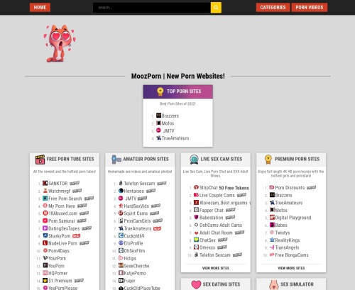 MoozPorn on pornon ystäville suunnattu XXX-hakemisto, joka listaa siististi parhaat XXX-sivustot puhtaassa käyttöliittymässä. Alusta on suosittu, koska se on järjestetty useisiin eri kategorioihin, kuten ilmaiseen pornoon, amatööreihin, hentai-mangaan, uusiin huippusivustoihin, homopornoon, saattajiin, VR-pornoon, pornopeleihin, hentai streaming matureen ja moneen muuhun. Ärsyttävien kolmannen osapuolen mainosten puuttuminen parantaa käyttäjäkokemusta ja mahdollistaa keskeytymättömän selailun. Kunkin sivuston logot ovat myös harkittu kosketus. Huolimatta siitä, että MoozPorn on portti maksulliseen ja ilmaiseen XXX-sisältöön, sen käyttö on ilmaista. Se toimii kattavana porttina erilaisille XXX-sivustoille fap-istuntojasi varten.MoozPorn-pornon ystävät pitävät tästä XXX-hakemistoalustasta, koska se on omistautunut turvallisuuden ja laadun varmistamiseen. Listatut XXX-sivustot tarkistetaan säännöllisesti, jotta saat aina parhaan pornokokemuksen. Kunkin osion ylimmät paikat on varattu parhaimmin luokitelluille XXX-sivustoille, mikä ohjaa käyttäjiä tarkistamaan ne ensin parhaan pornotutkimuskokemuksen saamiseksi. Tällä hakemistosivustolla on myös käyttäjäystävällinen käyttöliittymä, jossa on luotettava valikoima XXX-sivustoja, joilla on laaja XXX-kirjasto. MoozPorn yhdistää pornoharrastajat hyvämaineisiin, turvallisiin ja nautinnollisiin XXX-alustoihin. Löydät sivustoja, kuten Amabitch, Xvideos, TeenPorn, HairyPussyPics ja monia muita.