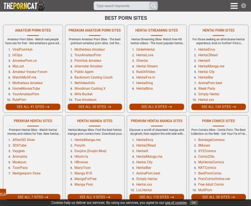 Rakastamme myös kaikkia hentai- ja anime-pornosuosituksia. Ja heillä on listoja sivustosuosituksista harvinaisille nicheille, kuten intialaiselle pornolle, arabipornolle ja jopa scat- ja kusipornosivustoille. Löydät jopa lähteitä, joista voit ladata massiivisia pornokokoelmia. Ja jos haluat jotain todellisempaa, tutustu live-seksikameroiden suosituslistaan ja escort-hakemistosuosituksiin. On lähes sata teemaluetteloa, jotka perustuvat moniin muihin kinkkuihin ja nicheihin. Kaikilla tällä alustalla suositelluilla sivustoilla on hyvin kirjoitetut arvostelut.