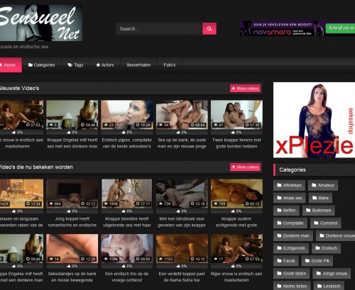 Sensueel on erittäin mielenkiintoinen pornotuubi - vaikka se on täysin epäoriginaalinen koko ilmaisen pornotuubin ideassa, se on hyvin omaperäinen, koska se on itse asiassa hollantilainen sivusto! Aivan oikein - vihdoin sinulla on putki, joka ei ole englanninkielinen ja jossa on upouusi, omaperäinen sisältö, jossa on kuumimpia eurovaimoja ja -poikia! Sivustolla on tavallinen valikoima vaihtoehtoja: luokat, tunnisteet, näyttelijät, seksitarinat ja kuvat. Sinun on tietenkin opeteltava hollantia, jos haluat nauttia näistä tarinoista, mutta kuvaosio on varsin hyvä. Siellä on tagipilvi, joka auttaa sinua liikkumaan, ja kategoriat vaihtelevat amatööreistä, naapureista ja koosteista eebenpunaiseen, kasvojen, isojen tissien ja anaaliin. Toinen plussa on se, että sivustolla ei ole ponnahdusikkunoita; koko selailukokemus on erittäin sujuva ja sinulla on vaikutelma, että olet jollain premium-sivulla, lukuun ottamatta mainoksia. Kaikissa videoissa on melko hyvä kuvaus (jälleen kerran hollanniksi) ja joitakin mukavia vaihtoehtoja, kuten dis/liking, jakaminen, tagit ja jopa lataaminen. On aina mukavaa nauttia uudenlaisesta pornosta, ja olin todella vaikuttunut joistakin heidän sisällöstään - kokeile sitä ja vietät tunteja heidän valtavan videokokoelmansa selaamisessa!
