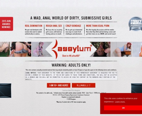 Assylum est un site entièrement dédié au porno de cul. Les amoureux du cul ont la possibilité de réaliser tous leurs fantasmes en regardant les culs se faire fesser et baiser en levrette. Vous êtes sûrs de trouver quelques-uns des plus beaux culs qui soient - ronds, longs, pleins, minuscules, gros, ou tout ce qu'il y a d'autre. Et ces culs adorent les bites et les chevauchent allègrement jusqu'à la gloire ! Les filles elles-mêmes sont super sexy et aussi excitées qu'elles le sont. Assylum est rempli de superbes scènes de BDSM, de fétichisme et de sexe anal, et pourrait facilement figurer dans le top 10 des meilleurs sites pornographiques. Vous y trouverez de nombreux instruments médicaux (utilisés pour ouvrir les culs), des pistolets à jet et d'autres types de matériel de bondage utilisés à fond. Le site compte environ 220 vidéos et leur durée de lecture est longue. L'abonnement standard coûte 34,95 $ pour 30 jours et 69,95 $ pour 3 mois. Un abonnement premium vous coûtera 48,95 $ pour 30 jours. Assylum.com pourrait être votre repaire idéal pour satisfaire vos envies de sexe anal !