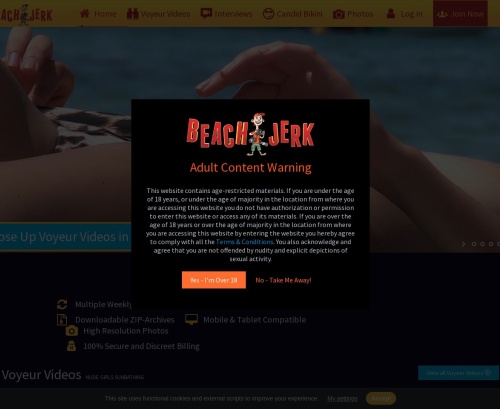 BeachJerk est un site pornographique qui vous propose toutes les vidéos juteuses de filles jouant seins nus et en bikini sur des plages publiques. Regardez et émerveillez-vous devant des vidéos impressionnantes de gros seins nus, de jolies filles jouant nues dans l'eau et de filles sexy se prélassant au soleil dans des bikinis serrés et minuscules. Les vidéos sont enregistrées en secret pour faire ressortir le voyeur qui sommeille en vous. Il y a des tonnes de filles sexy qui exhibent leurs jolis corps sur des lits de plage et sur le sable, et vous pouvez profiter de chaque seconde en les regardant, grâce à BeachJerk. Le site propose plus de 1 000 scènes vidéo de voyeurisme que vous pouvez regarder et apprécier. Vous pouvez également voir plus de 1 348 galeries de photos, qui sont disponibles au format ZIP pour un téléchargement facile et rapide.