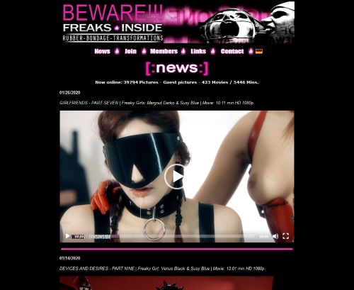 Freaks Inside is yet another Latex porn site coming from Germany, and it’s an independent project run by a team who is really into the whole fetish. You can feel that from how much passion they put into their movies. They experiment with so many kinks and subgenres of the latex BDSM world. You will even get some bizarre porn with furry latex suits. Another proof that the guys behind Freaks Inside are legit into Latex is the complexity of their outfits. It’s not a site where they order random latex outfits from the web before the shooting. Their latest movie is a solo reverse-strip show in which a hottie puts on four layers of nylon and two of latex, and she does it in a walk-in dressing with hundreds of latex pieces.