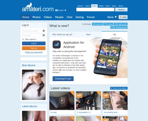 Amateri.com is een zeer rijke website met tonnen dingen die je kunt bekijken. Het is een plek met zowel video's als fotogalerijen waar je graag naar zult kijken. De website heeft een geweldig ontwerp en de homepage brengt u de nieuwste video's, de beste fotoalbums en de nieuwste fotoalbums. Wat moet worden vermeld is dat de meeste van deze wilde amateurs hun neuken met de wereld hebben gedeeld en nu krijg je om te genieten van hun genereuze gebaar. De website heeft meer dan 6000 leden die ervan houden om over verschillende onderwerpen te discusieren, maar ook om video's en foto's te uploaden.Basically, deze website is een gemeenschap van mensen die neuken en hun neuken delen. Samen met deze video's en foto's, zijn er zo veel erotische verhalen die u zullen verblinden en stimuleren uw verbeelding in de meest verbazingwekkende manieren. Er zijn veel kamers chatrooms en een grote dating sectie waarin je een aantal van de leden te leren kennen en zelfs te ontmoeten in persoon. Je kunt de blogs bekijken of zelfs meedoen aan allerlei wedstrijden. Het enige wat je nog moet doen is de inhoud van deze geweldige community website uploaden of ervan genieten. Veel plezier ermee!