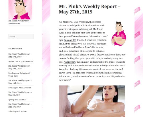 And it’s completely logical that the design is – you’re guessing – pink! Though I have to admit that the template is easy on the eyes and I really enjoyed browsing his site and discovering a huge amount of information. It’s one of those small jewels of the porn world and you need to see it to believe it.