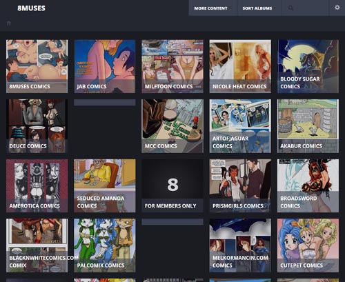 It's very easy to take advantage of everything that they share here! 8muses has free sex comics and adult cartoons, porn comics, hentai, 3D porn, JAB comix, milftoon, mind control comics and others. The layout is a bit different and it will give you on the homepage some generic categories that you can access with a single click.