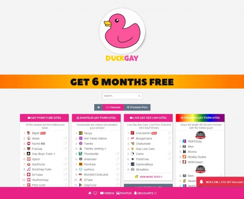 The world of gay porn has boomed in the past five years. There are so many new sites in so many niches and genres that it became hard to keep track of all the good platforms. But we’re always here to help porn fans of all kinds and this time we’re going to recommend Duck Gay, a directory of top-shelf gay adult entertainment that’s going to offer you tons of gay porn sources throughout the internet. No matter what you want to enjoy, you will find lists of both premium and free sites offering it. The most recommendations can be found in the gay porn tubes and the amateur gat sites categories, but you will also find the lists of the best live gay cams and premium gay porn sites.
