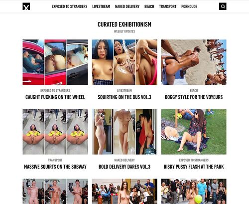 Exposed To Strangers comes with an impressive collection of public debauchery. The main theme throughout this collection is exhibitionism and it delivers a mix of flashing, public nudity, public masturbation, and risky sex situations. We love the way everything is organized on the site. You get four main categories to help you better browse the collection: Beach, Livestream, Nude Delivery, and Transport. Some of the hot babes that you’ll find in these public exposure videos are OnlyFans models and cam sex streamers. But you will also find many amateur-made videos coming from naughty couples who have a thing for exhibitionism.