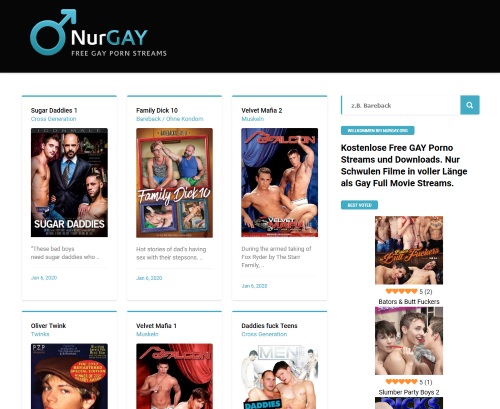 NurGay - это порнокаталог лучших релизов DVD и сцен в мире гей-порно. Но вместо того, чтобы продавать порно, он предлагает его бесплатно. На этом сайте вы найдете рекомендации по всем видам гей-порно от лучших студий современности. Каждая рекомендация сопровождается кратким описанием производства, из которого вы можете узнать все о фильме, который собираетесь посмотреть, прежде чем начать его просмотр или скачивание. Потоковое воспроизведение и загрузка не осуществляются на этом сайте. Вместо этого к каждому фильму прилагается несколько ссылок для просмотра и скачивания, где вы можете найти полнометражный фильм бесплатно. Если одна ссылка не работает, всегда есть еще три или четыре. Описания фильмов также позволяют узнать больше о горячих парнях, выступающих перед камерой, и о режиссере, создавшем фильм. Хотя сайт выглядит так, как будто он не предлагает много возможностей для просмотра, контент хорошо промаркирован, и вы можете использовать строку поиска для поиска любой категории или перегиба, который вы хотите посмотреть. На сайте есть все: от соло твинки до групповухи, ролевые фильмы и табуированные семейные фантазии, и даже множество гей BDSM действий.