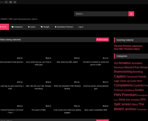 QOSVideos - один из самых диких межрасовых порносайтов, которые вы найдете в сети. Весь сайт посвящен БНВО. Официальная ниша этой коллекции - BNWO, что сокращенно означает Black New World Order и призвана поставить белых мужчин, смотрящих эти фильмы, в покорное положение. Коллекция включает в себя как премиум, так и любительские фильмы. В премиум-порно представлены все самые горячие белые звезды современности, которые получают BBCed в фильмах с таких сайтов, как Blacked, DarkX или DogfartNetwork. В сборник также включено межрасовое порно премиум-класса из Европы, в котором восточноевропейские цыпочки, никогда не знавшие черных членов, подвергаются изнасилованию.