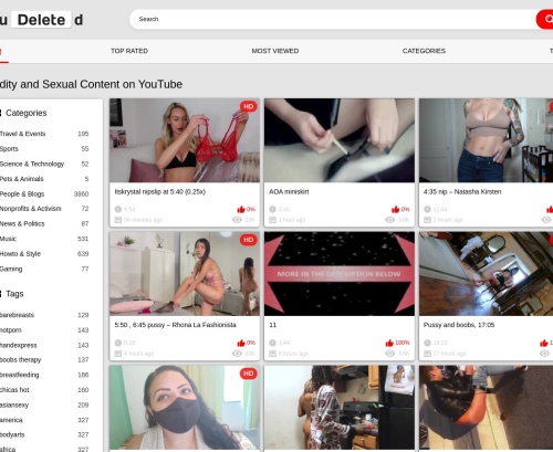 Сайт имеет простой интерфейс, и вам не понадобятся никакие технические навыки, чтобы сориентироваться на главной странице и других страницах. Главная страница состоит из нескольких разделов, а именно: Главная, Top Rated, Most Viewed, Categories и Tags. На сайте нет всплывающих окон и рекламы. Это значит, что вы сможете смотреть порно без помех. Nudeleted - бесплатный сайт, и вам не нужно ни на что регистрироваться; просто заходите на сайт и начинайте смотреть порно и дрочить по своему усмотрению.