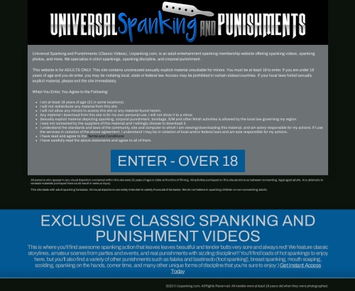 USpanking is a premium adult entertainment platform that caters to enthusiasts who crave spanking and punishment porn videos. The site exudes a sleek and clean interface that showcases some teaser videos on the homepage. All the spanking videos are a visual treat, as they are available in high-definition and superb 4K quality, ensuring you always have the best viewing experience. The extensive library is updated weekly with fresh spanking videos. This ensures there's always something new to add to your fap collection. Whether you're searching for classic storylines, amateur scenes from parties and events, or real punishment porn videos, the variety housed under multiple categories will spoil you for choice.