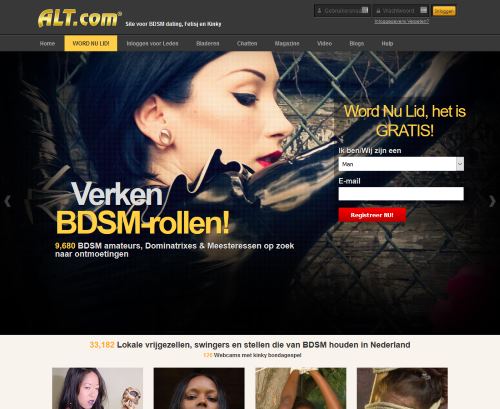 I världen av online dejtingtjänster tar Alt.com förstaplatsen när det gäller alternativa och extrema dejtingtjänster. Om du alltid velat hitta en lämplig BDSM-partner är detta din bästa chans. Den här webbplatsen har över en miljon kinky medlemmar som är villiga att tillsammans med dig få de mest extrema njutningarna att sluta med morgonens första ljus. När du väl har skapat en profil får du möjlighet att ange dina uppgifter och söka efter de mest lämpliga medlemmarna. Du kan först använda funktionen "sök lokalt" och se vilka medlemmar som finns tillgängliga i ditt område.