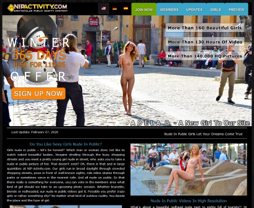 NIPActivity har inget med bröstvårtor att göra. Det finns bröstvårtor som exponeras offentligt. Men det är resten av kroppen på en modell på den här webbplatsen också. NIP är en akronym för ett erotiskt projekt som heter Naked In Public. Webbplatsen är delvis ett socialt experiment och delvis en fantasi om offentlig exponering. Och det bästa med den är att innehållet är 100 % äkta. Som du kanske kan förvänta dig kommer den här webbplatsen till oss från Europa, och den tar med sig vackra nakna europeiska babes på de vackra historiska gatorna i Tyskland och Spanien. En annan sak som du kanske redan förväntar dig är bristen på hardcore action. Sajten kommer bara med offentlig nakenhet som är fotograferad i fullt dagsljus. Ibland kan förbipasserande killar interagera med modellerna, men det är ungefär allt. Det förekommer lite beröring i de lesbiska videorna, men inget alltför sexuellt. Och det finns många vittnen som tar många bilder. Tjejerna spelar med och poserar för sina telefoner. Intensiteten i sessionerna är dock hög. Om du har en fetisch för offentlig exponering kommer du inte att ha några problem med att runka av dig till dessa videor. Dessutom använde regissörerna mestadels unga vackra tjejer med fantastiska bröst och vackra fittor för den här samlingen.