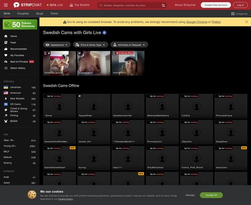 Stripchat Swedish is one of the very few places on the internet where you can find Scandinavian girls for cam sex. As you might know, Swedish babes are usually either rich or hot. But most of the time they are both. And rich hot babes are not rushing to join camming sites. There is a dire need for Scandinavian women on camming platforms. Stripchat is one of the very few platforms where you can find them these days. And they are just as awesome as you expect them to be. First of all, you should know that they speak perfect English. So you don’t have to be a Swede to talk to them. And they are extra hot. They have beautiful faces, perfect natural titties, tall and slender figures, and cleaned shaved pretty pussy.